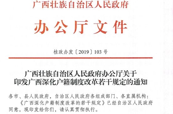 • 又一地发布落户新政,广西宣布城镇落户限制全面放开。   广西全面放开城镇落户取消参保、居住等落户限制   据广西壮族自治区人民政府网站消息,日前《广西深化户籍制度改革的若干规定》(以下简称《规定》)印发并于12月1日起施行。这将是广西甚至全国户籍制度一次具有里程碑意义的改革,力度之大前所未有。……